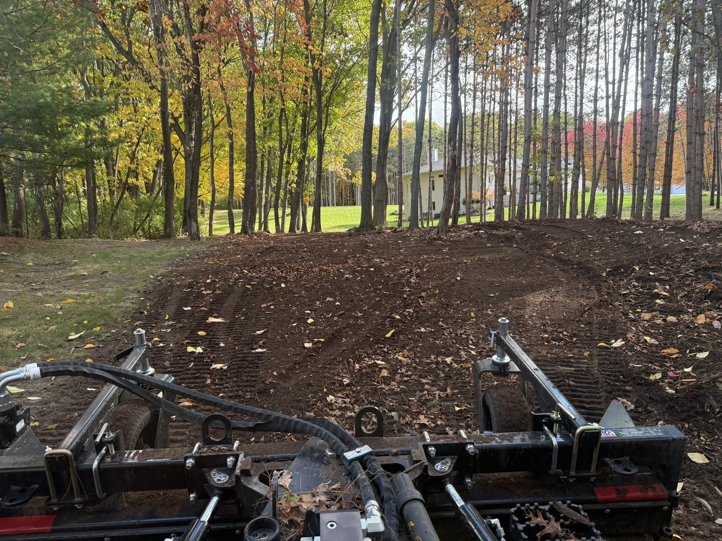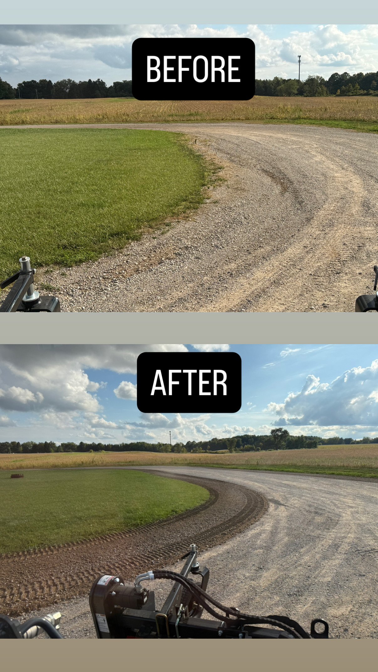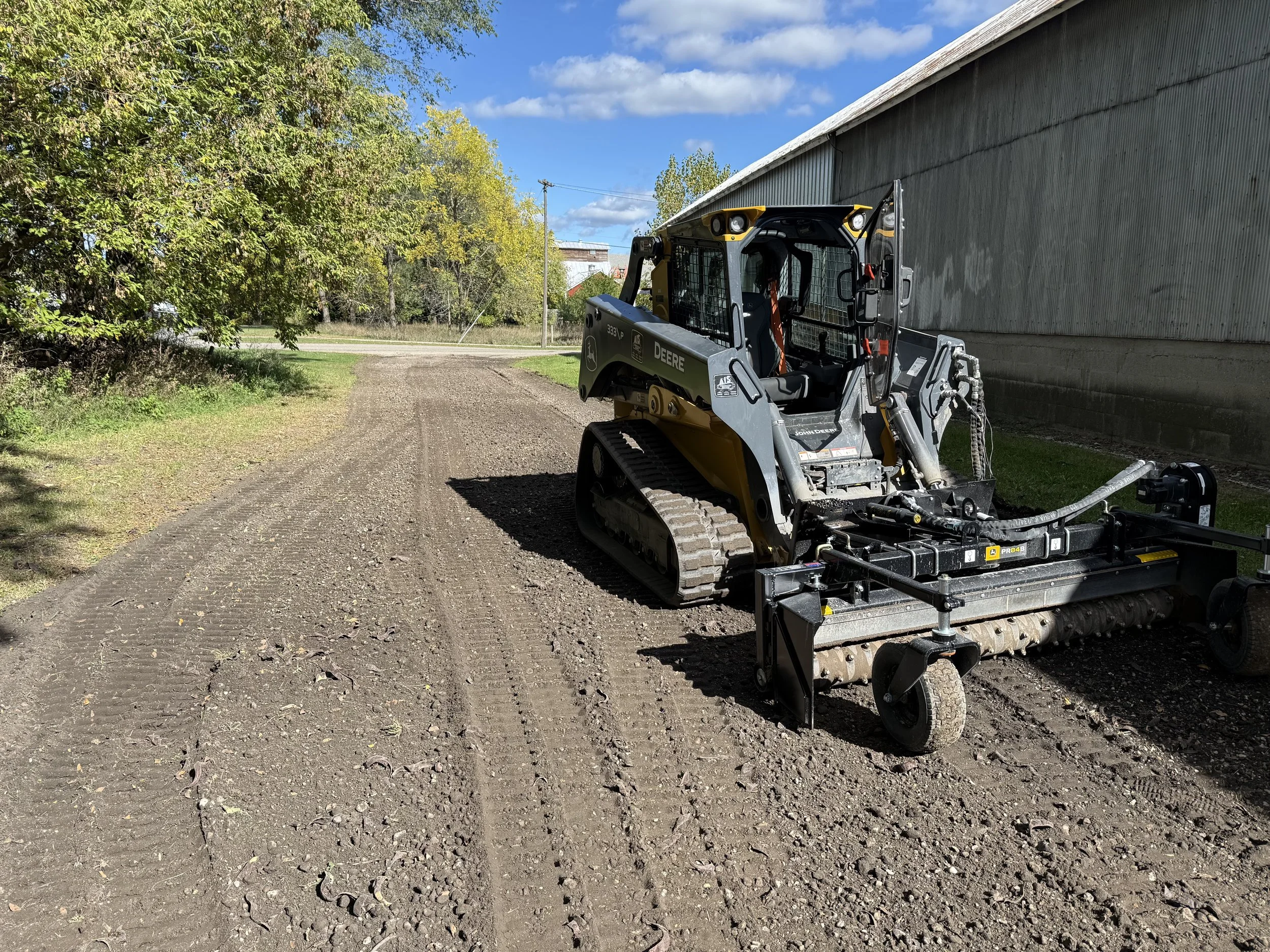 A driveway that was transformed with a Harley Rake attachment and a skid steer